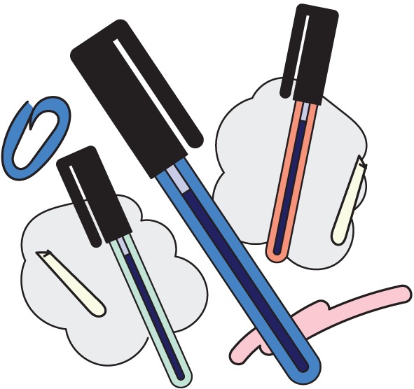 إلى جانب الأقلام، يمكنك حمل مجموعة أدواتك الصغيرة المفضلة، التي قد تكون ملقاطًا أو مقصًّا.