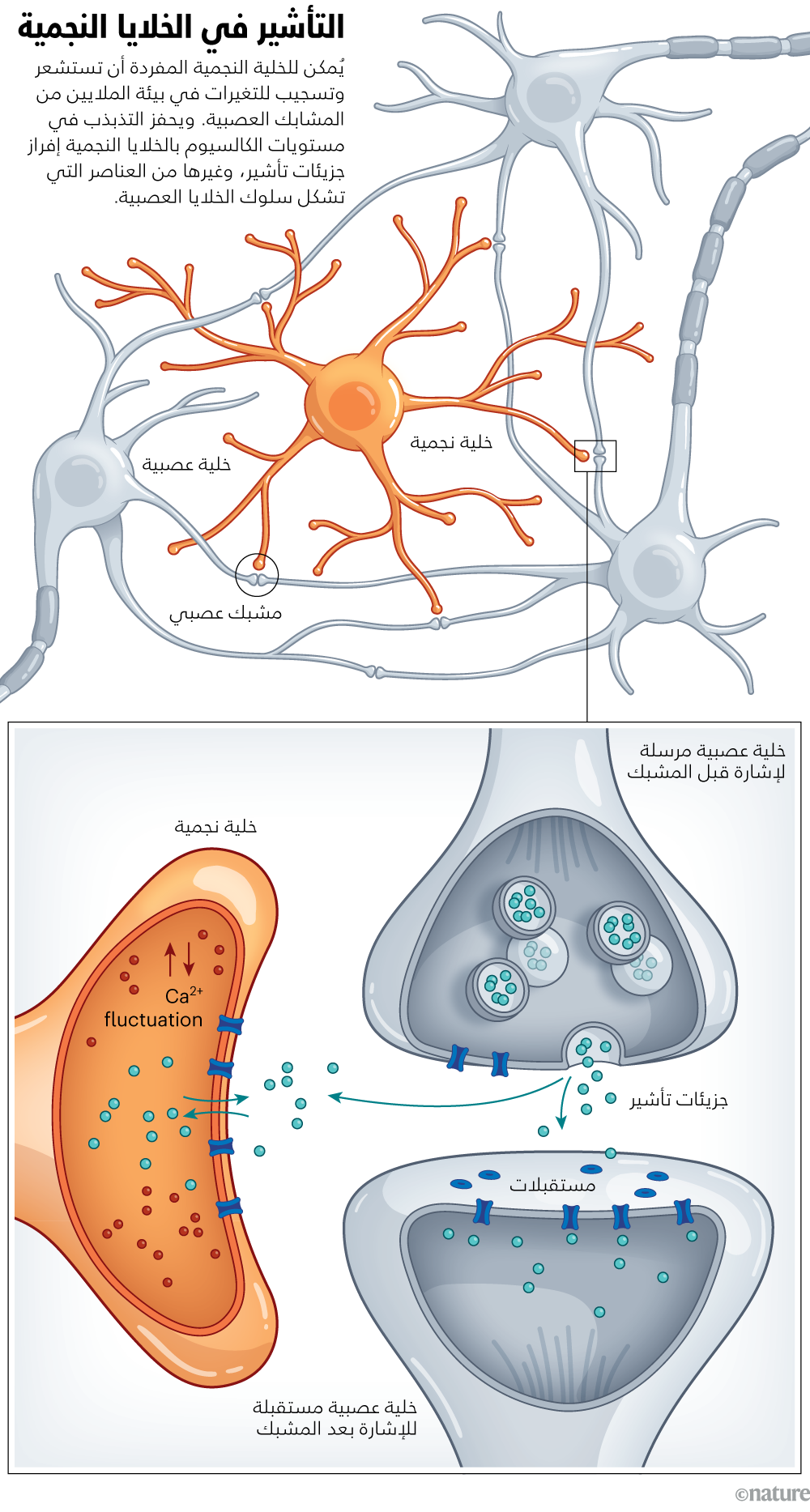 في هذا الإطار، تقول نيكولا ألِن، اختصاصية علم الأعصاب من معهد سولك للدراسات البيولوجية في مدينة لاهويا بولاية كاليفورنيا الأمريكية، والتي درست طوال مسيرتها المهنية الخلايا النجمية وغيرها من الخلايا غير العصبية (ويشار إلى النوعين معًا باسم الخلايا الدبقية): "الخلايا العصبية والدوائر العصبية هي وحدات المعالجة الرئيسية للبيانات في الدماغ، لكن الآن بدأ يتضح مدى تأثير الخلايا النجمية في عمليات المعالجة تلك". لذا، حسبما تضيف: "أصبحت المقاعد في المؤتمرات عن الخلايا الدبقية غير كافية دائمًا لاستيعاب أعداد من يسجلون رغبتهم في حضور هذه الفعاليات".
