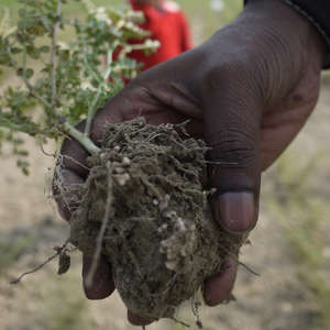 Chickpea plants form lifelong partnerships with soil bacteria that dwell within nodules in their roots. These symbionts capture and convert nitrogen into essential biomolecules, such as amino acids. However, the efficiency of this process depends on interplay between environmental conditions and genetic variation in the plant and microbes, with significant implications for the yield of this important crop.