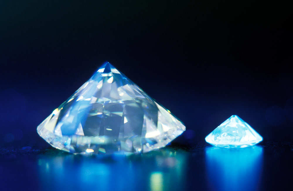 ダイアモンドは結晶中に格子欠陥や不純物を含んでおり、 紫外線や可視光、赤外線を吸収すると蛍光を発する。 Credit: Patrick Landmann/Hulton Archive/Getty