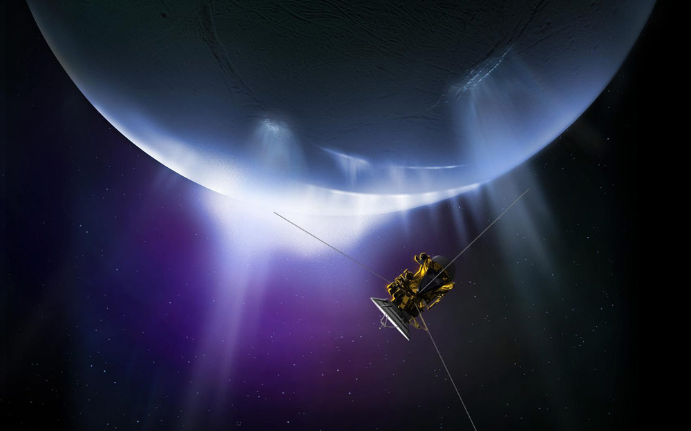 2017年4月13日にNASAは、土星の氷衛星エンセラダスのプリューム(表面の割れ目から宇宙空間に吹き出している水蒸気と氷粒子)に水素分子が含まれていることを確認したと発表した。この水素分子は、海底に熱水噴出孔があり、そこで海水と岩石が反応したことで生じた可能性が高いという。水素は微生物のエネルギー源になり、また太古の地球は、こうした環境で生命をはぐくんできたと考えられている。 Credit: NASA/JPL-Caltech
