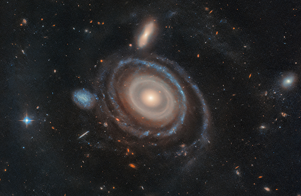 エール大学(米国コネチカット州ニューヘイブン)のImad Pashaらはこのほど、NASAのハッブル宇宙望遠鏡とハワイのケック望遠鏡を使って、9本の環を持つ衝突環状銀河を発見した。「ブルズアイ(標的の中心)」という愛称を付けられたこの銀河(写真)は、天の川銀河の約5倍の大きさで、隣のアンドロメダ銀河よりも約200倍遠い所にある。