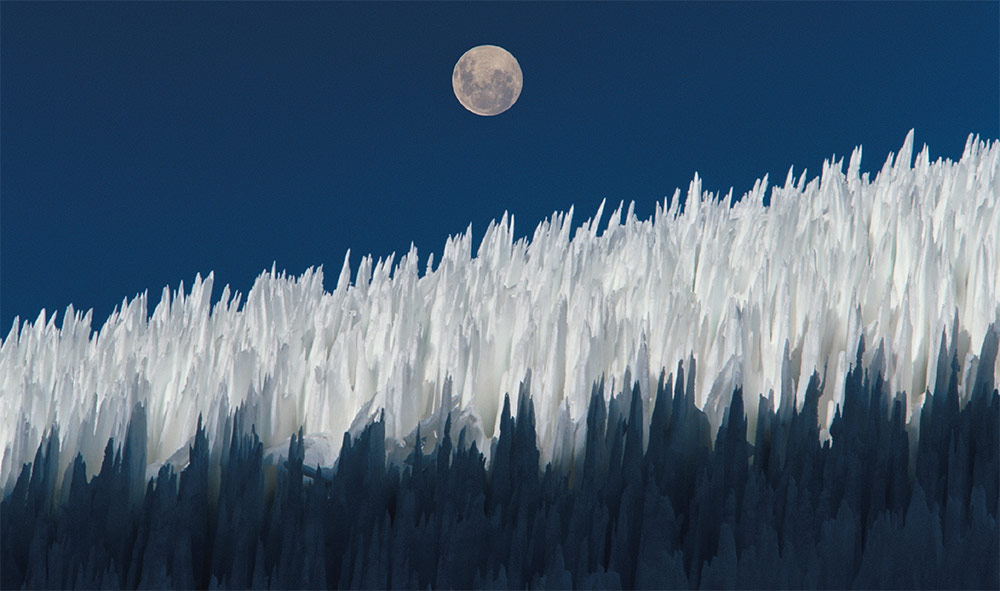 アンデス山脈のペニテンテと呼ばれる氷の塔。高さは数メートルだが、冥王星の刃状領域の巨大な氷の刃と類似のものかもしれない。 Credit: ART WOLFE/GETTY